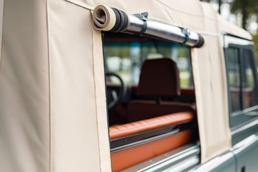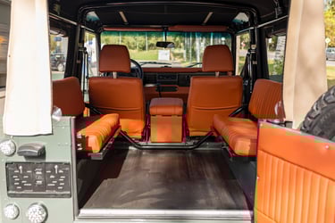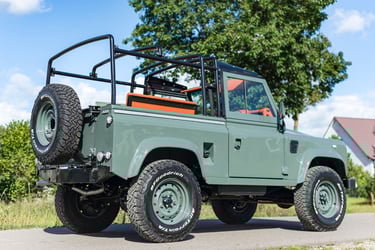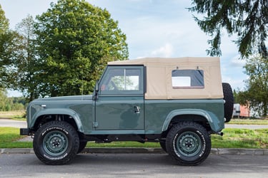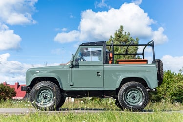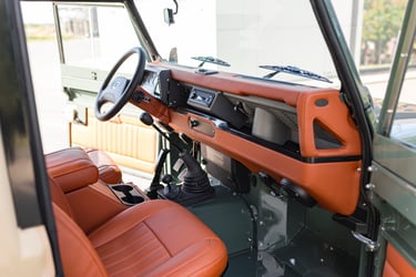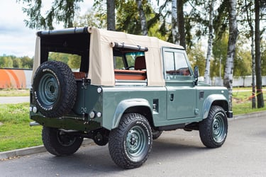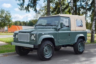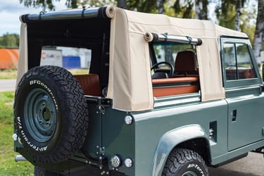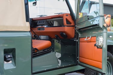 Land Rover Defender 90 with a custom made soft top. It underwent a full frame off, nut and bolt restoration. Including half-doors for a full beach drive experience, fully sandblasted and powdercoated chassis and all new or refurbished components around the bullet proof 300tdi engine. Long list of parts and labour used for this project. Contact us for more details.